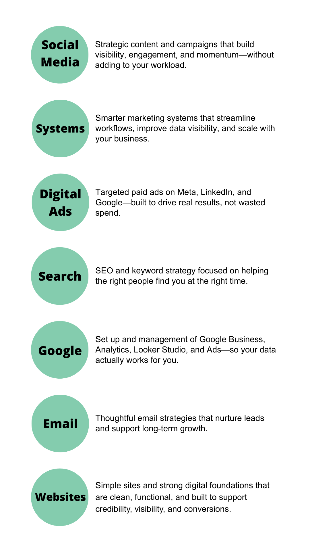 I bring hands-on experience across the full digital marketing stack: websites, conversion-focused email marketing, Google Business and analytics setup, CRM configuration, brand and logo design, and strategic social media planning—built to support real business goals.